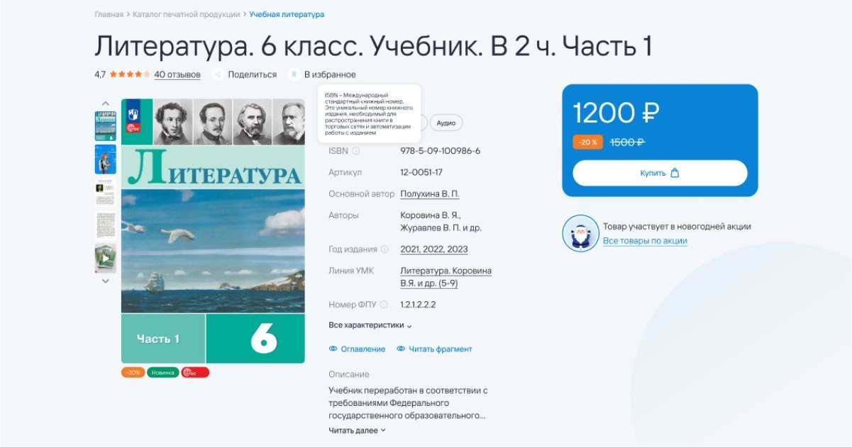 2. Выделили характеристики товаров, важные конкретным пользователям. Учителя и родители выбирают учебники по разным критериям. Например, первые обращают внимание на содержание, книжный номер ISBN, соответствует ли учебник ФГОС и входит ли он в ФПУ. Такие характеристики мы для удобства выносили на первый экран.
