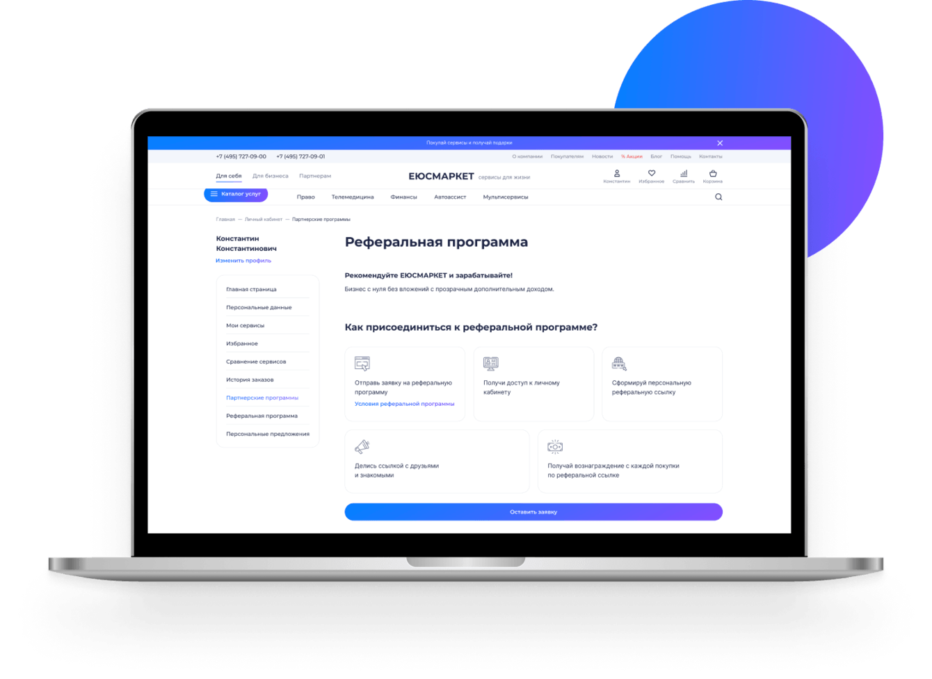 - Каждый пользователь может стать участником реферальной программы, оставив заявку;