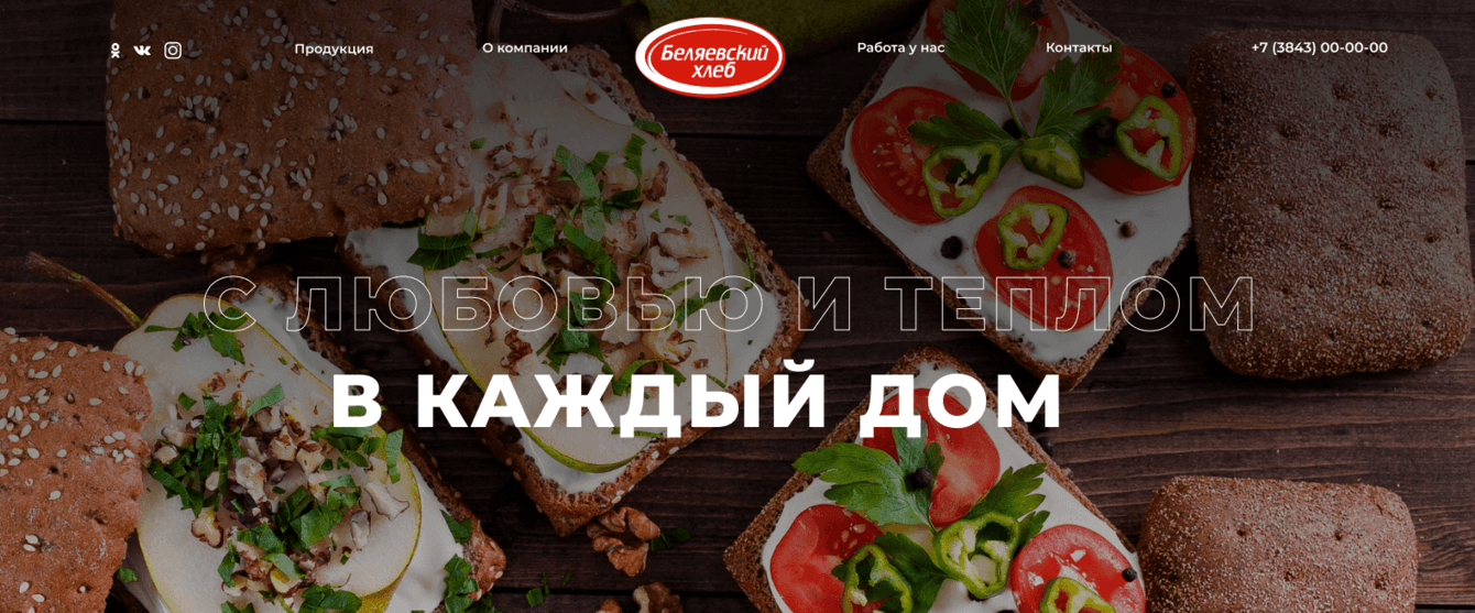 Вёрстка прошла сладко, да гладко. Мы сделали классный аппетитный слайдер, погрузили посетителей сайта в прошлое чёрно-белыми историческими снимками комбината. Рассказали его нелёгкую историю. Красочно показали путь рождения того самого беляевского хлеба, который вот уже восемь десятилетий выпекается в настоящей каменной печи.