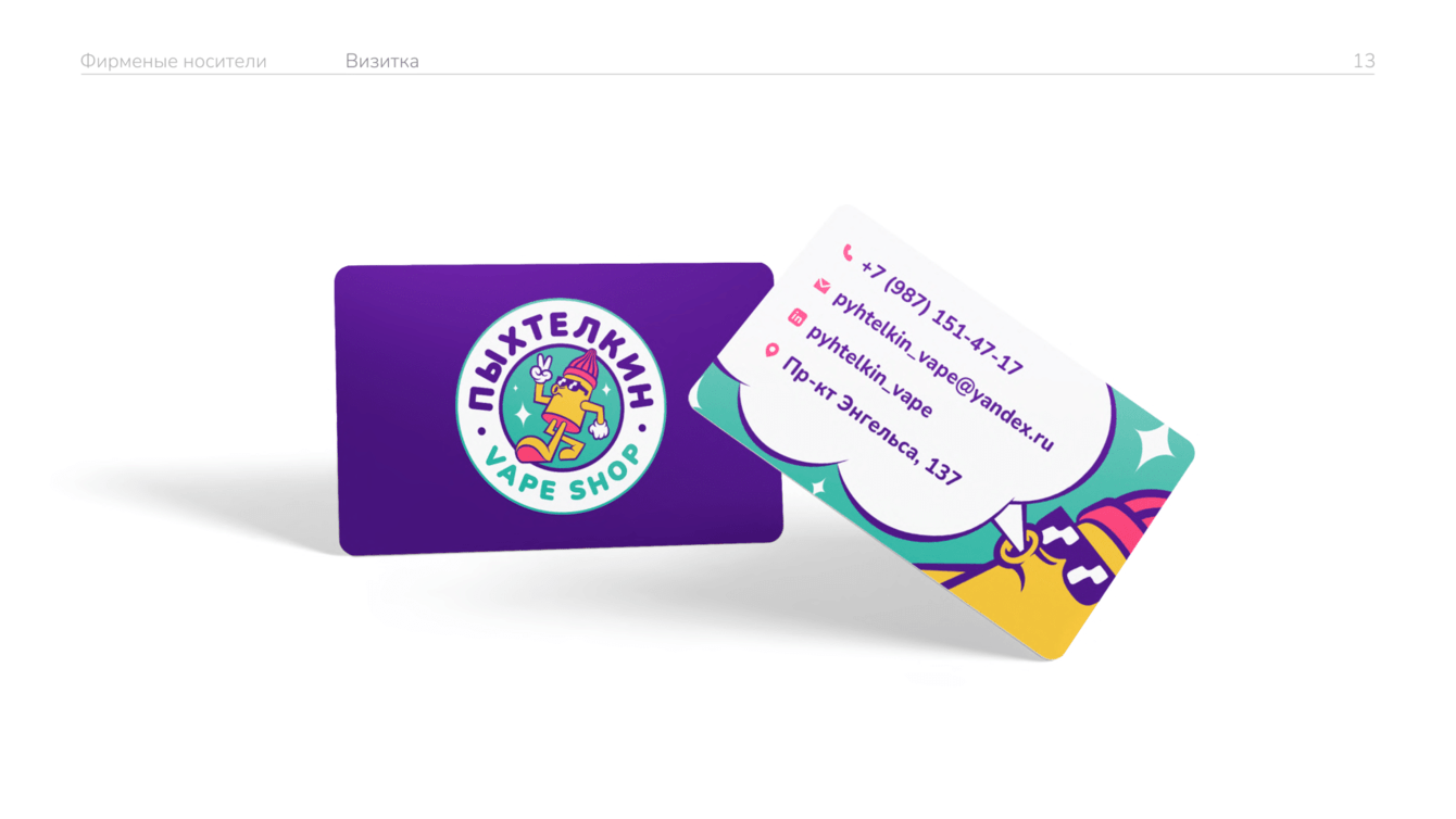 Сделали персонажа лицом бренда, его можно встретить на логотипе, мерче (кружках, футболках, пинах), на входе в вейпшоп, фирменных постерах, упаковке и рекламных материалах.