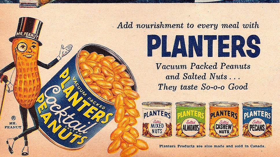 В США на протяжении десятилетий оживляли товары, превращая в харизматичных героев. Один из первых — Мистер Арахис (Mr. Peanut), культовый маскот Planters. Персонажа выбрали в 1916 году, когда компания проводила конкурс на лучший дизайн. Победила идея антропоморфного арахиса с моноклем и цилиндром. Позже художники добавили трость, делая персонажа символом элегантности и утончённости.