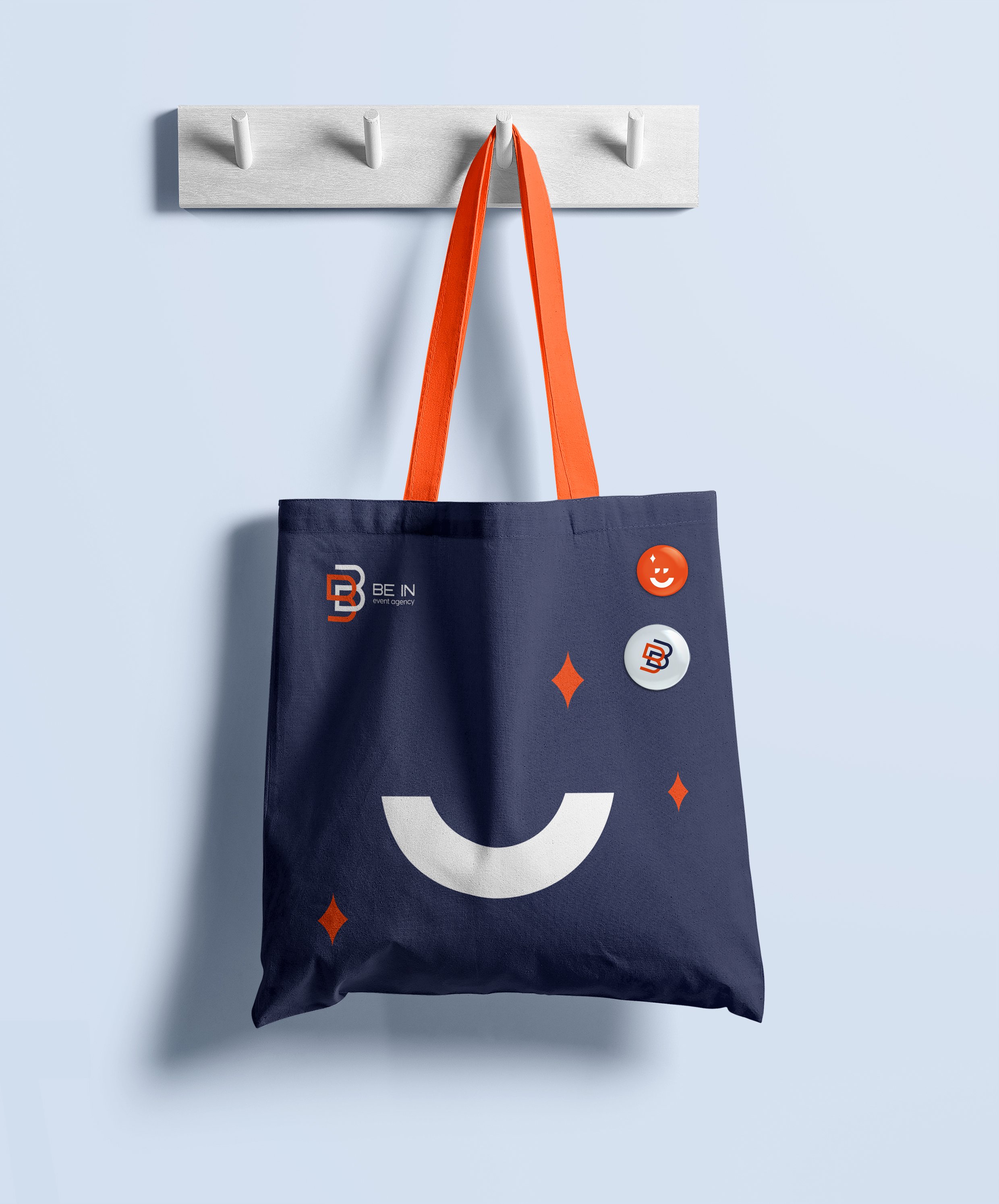 Изначально фирменными цветами BE IN были черный и оранжевый. У клиента было пожелание оставить преемственность к прошлому стилю, поэтому оранжевый цвет остался в палитре, как акцентный. В сочетании с глубоким синим создается ассоциация с бизнес- подходом агентства