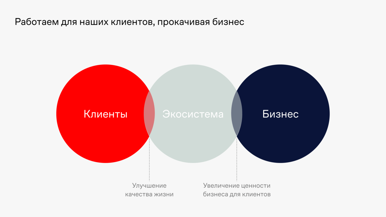 Цифровая экосистема — это сервисы, устройства и другие продукты, которые поддерживает и развивает компания. Они неразрывно связаны в единую сеть организационными и технологическими процессами. Это эффективный инструмент, который позволяет заложить технологичный фундамент развития бизнеса, его «экзоскелет», что нам и было нужно. Экосистема прорастает во все бизнес-процессы и связывает их воедино. Что она даёт: