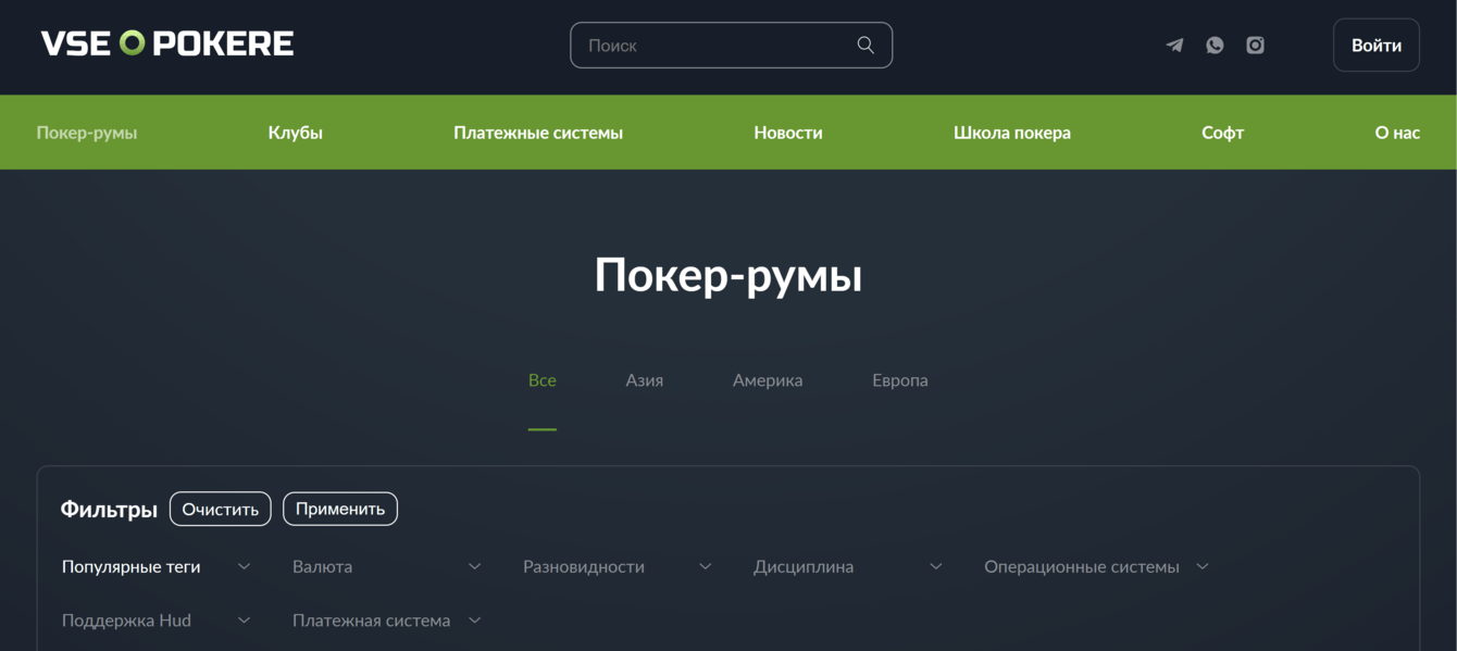 Vseopokere — платформа с каталогом покерных столов (покер-румов), актуальными новостями, софтом и инструкциями для обучения игры в онлайн-покер.