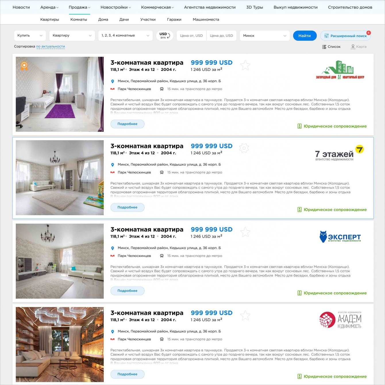 Создать портал, который станет лидером в нише недвижимости Республики Беларусь.