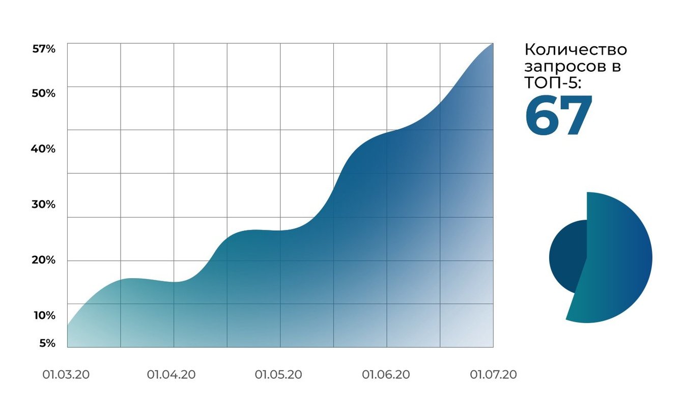 Говоря о SEO-продвижении: мы добились вывода приоритетных запросов в ТОП и увеличили поисковый трафик.