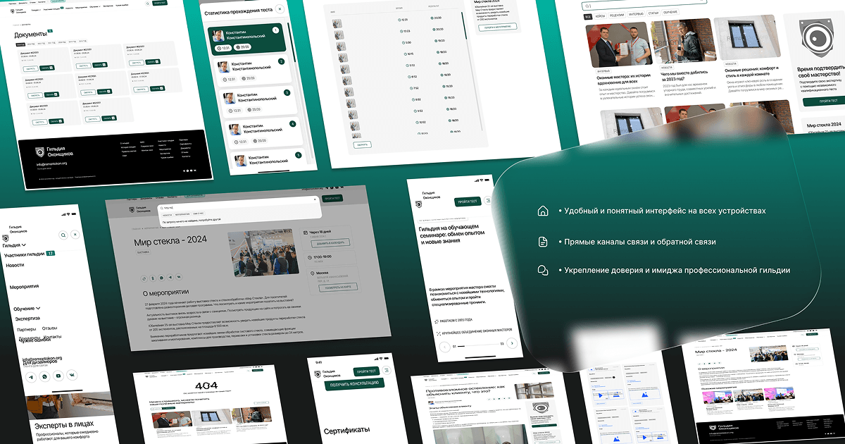 В результате проекта устаревший, неадаптивный сайт гильдии был преобразован в современный, мобильный и визуально целостный ресурс на платформе 1С-Битрикс. Новый сайт отражает ценности профессионализма, поддержки и сотрудничества, что усилило доверие к бренду среди потенциальных членов. Благодаря гибкой админ-панели и подробной технической документации платформа легко управляется без привлечения разработчиков. Несмотря на длительный срок реализации (февраль 2024 – апрель 2025) из‑за сезонной загруженности заказчика, созданный сайт стал современной визитной карточкой гильдии в цифровой среде и повысил привлекательность членства в профессиональном сообществе.