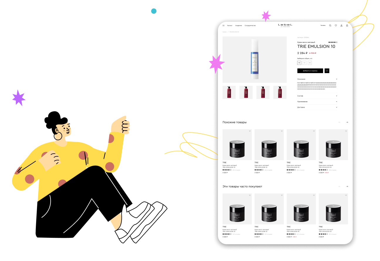 С самого начала мы хотели создать проект, который будет отвечать минималистичной эстетике бренда Lebel и при этом не будет похож на готовые решения.