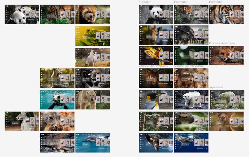 Этот этап оказался самым увлекательным как для нашей команды, так и для команды Заказчика. Концепция "материков" давала такой простор для выбора яркой, сочной графики, что дизайнерам было сложно остановиться с генерацией вариантов, а Заказчику - определиться с их отбором. Но, к сожалению, материков всего шесть).