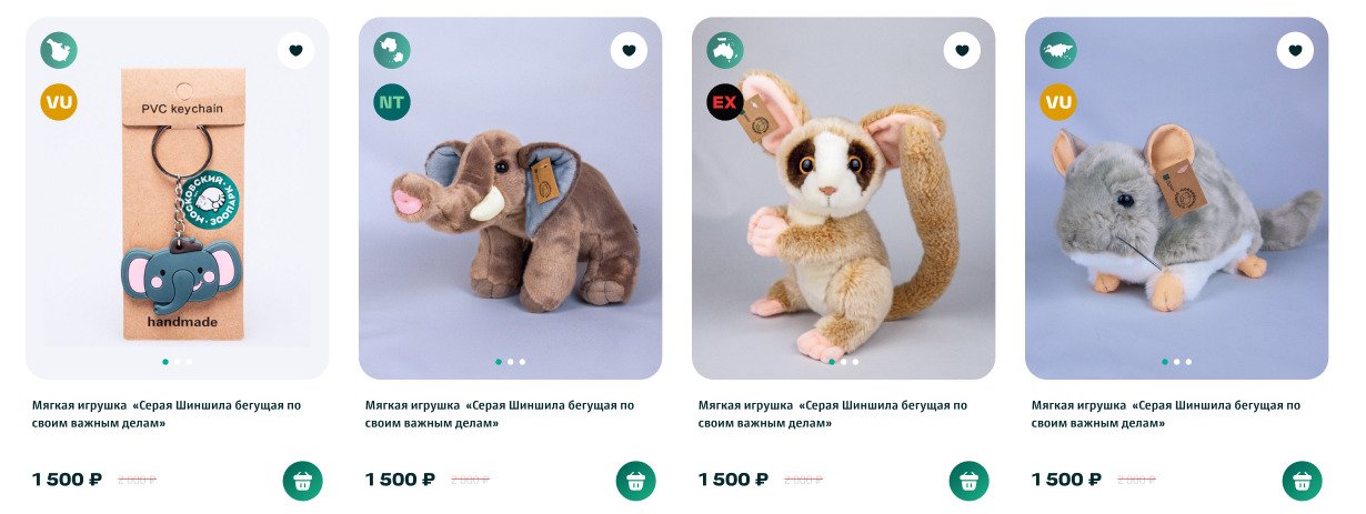 Особенности каталога в этом проекте - особые ярлыки у товаров, означающие принадлежность животных к материкам, охранный статус и др. По этим же свойствам можно и отфильтровать товары.