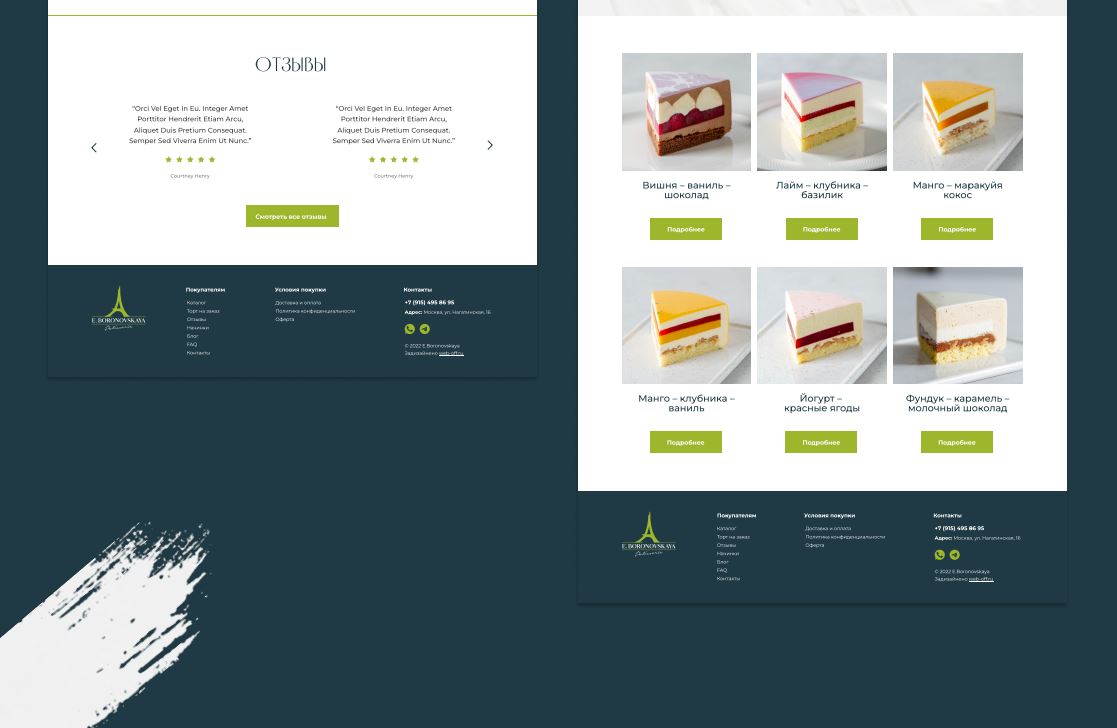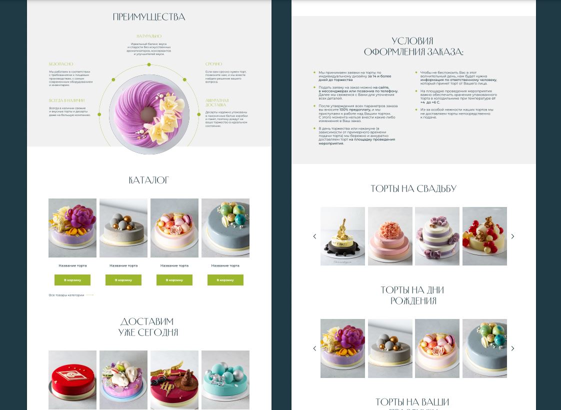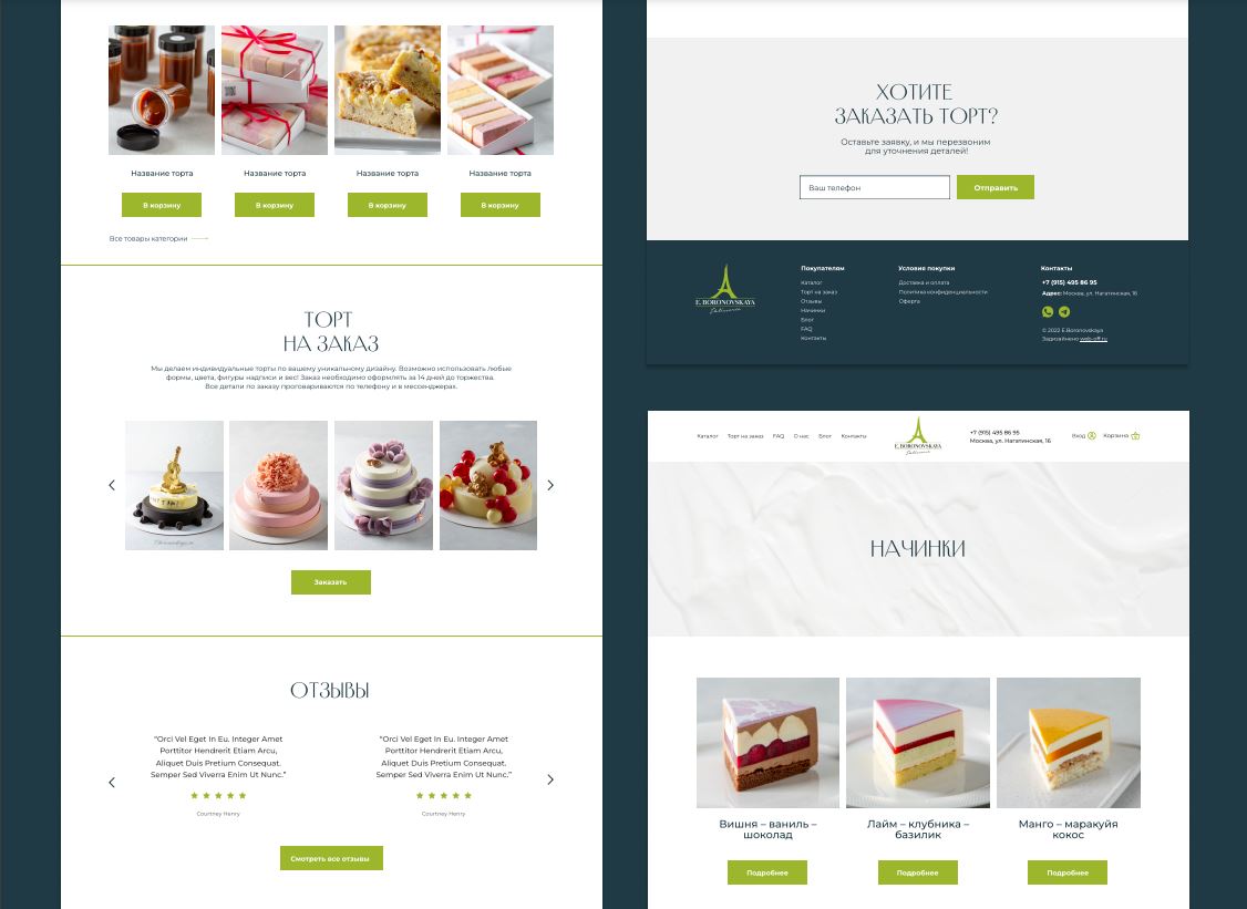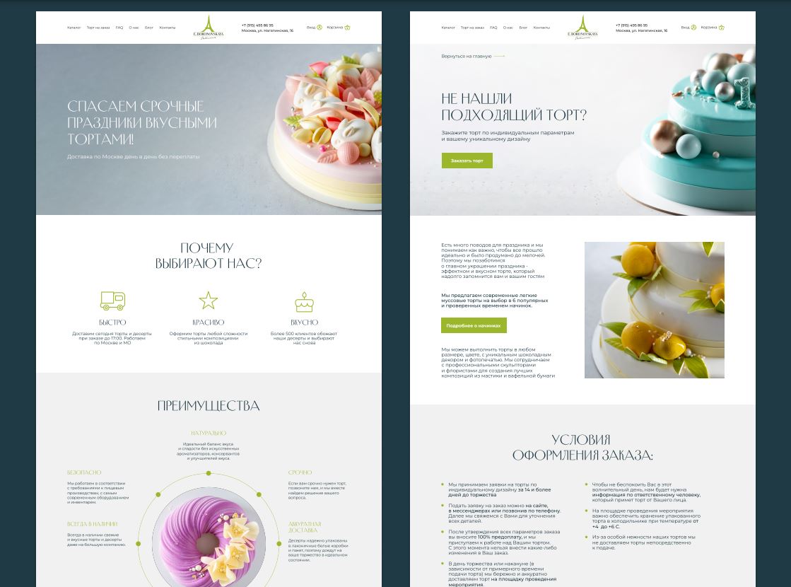 Масштабируемый интернет-магазин на wordpress по индивидуальному дизайну разработанному в Figma. Магазин с удобной навигацией, закрывающий 90% возражений и вопросов клиентов. Реализована возможность выбора тортов и десертов разного размера и из разных начинок.