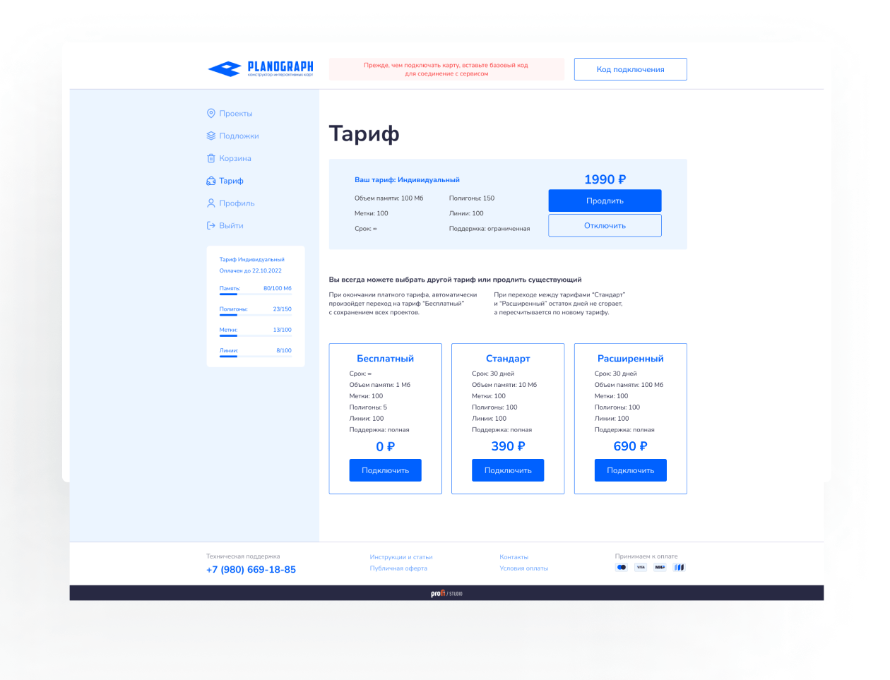 Также в процессе работы пользователь может отключить тариф, продлить или изменить на другой.