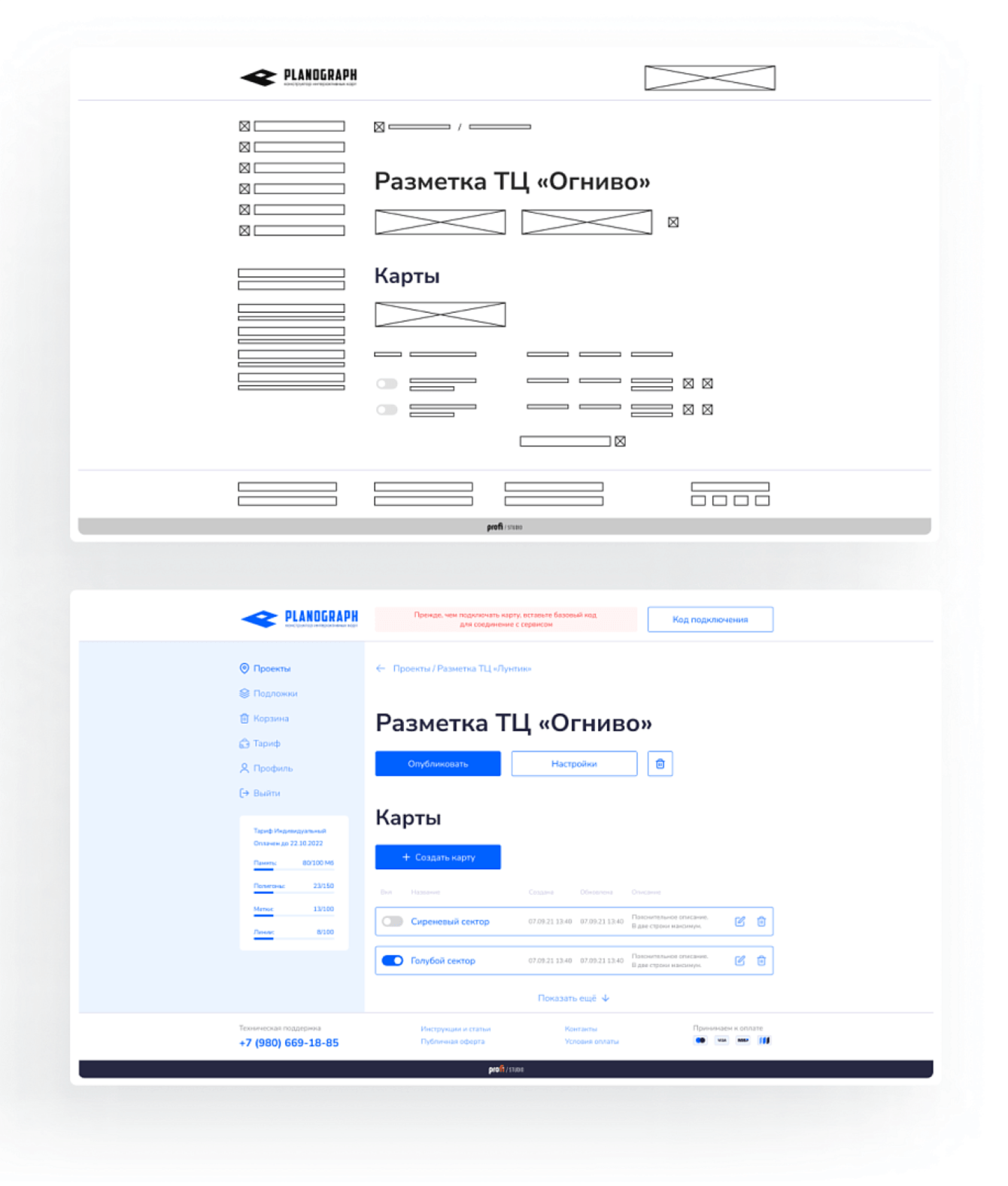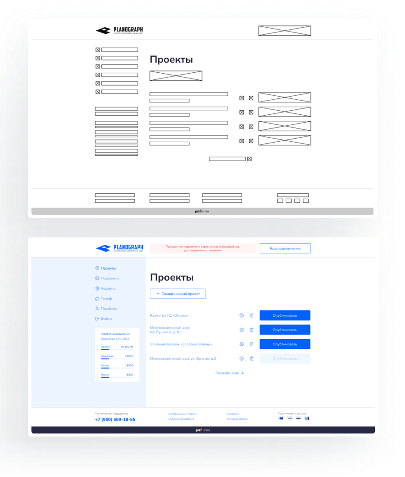 7) Разработали прототип сервиса на уровне вайрфреймов и применили отрисованную дизайн-систему.
