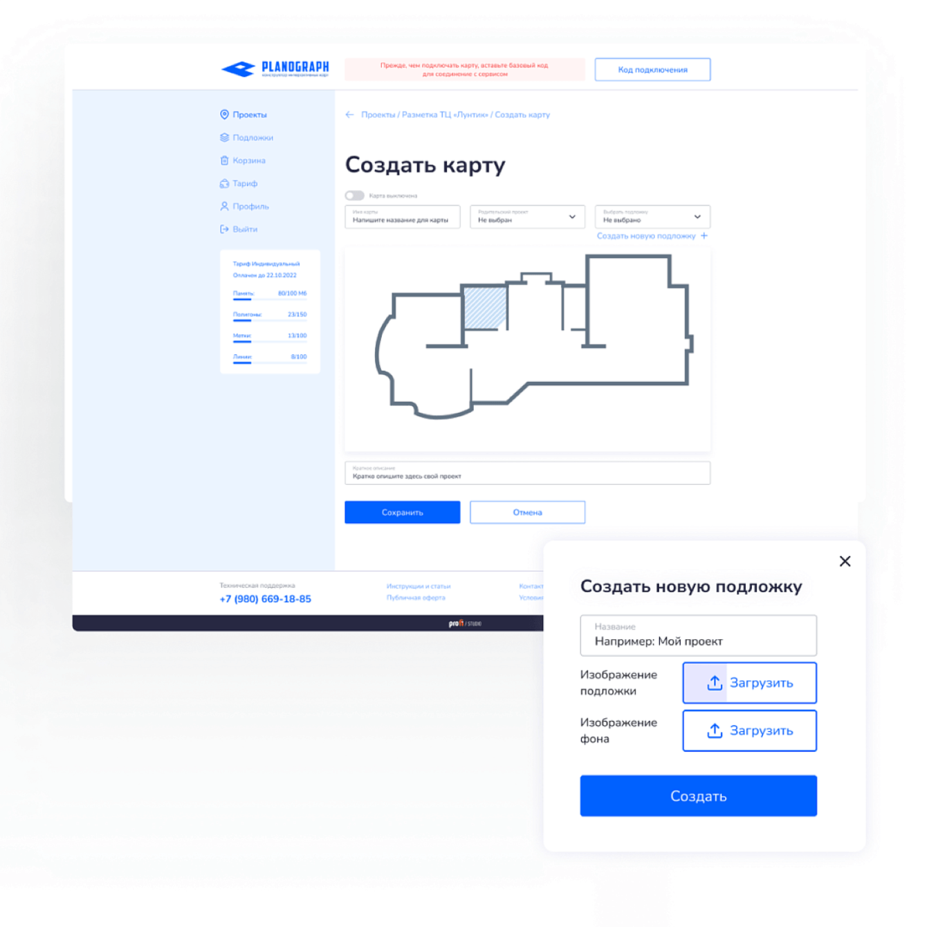 Разметка карты осуществляется на Яндекс.Карте ли на собственной подложке. Добавили возможность загрузить свою подложку на этапе создания карты или заранее в разделе «Подложки».