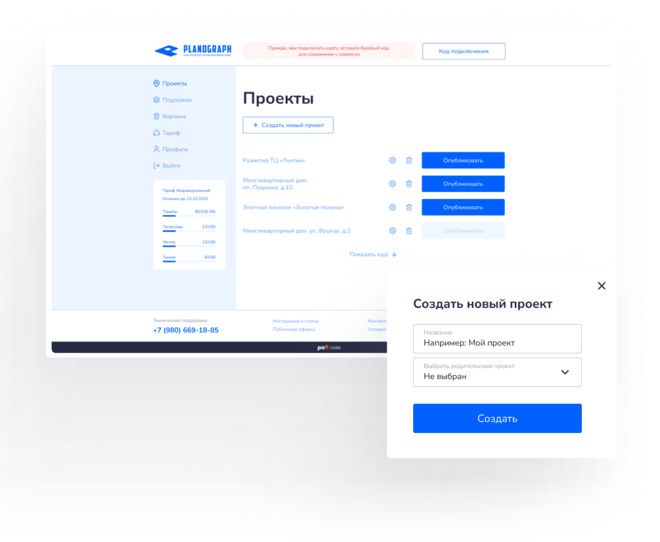 8) Первый экран, на который попадает пользователь после авторизации – это «Проекты». Работа начинается с создания папки или проекта для карт.