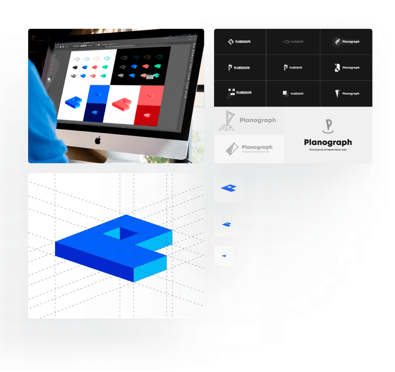 Разрабатывая дизайн, мы использовали спектр идей от геометок до абстрактных фигур, напоминающих карту. При подборе идеи для знака использовались чёрно-белые изображения, чтобы пользователь абстрагировался от собственных вкусовых предпочтений и сфокусировался только на форме.