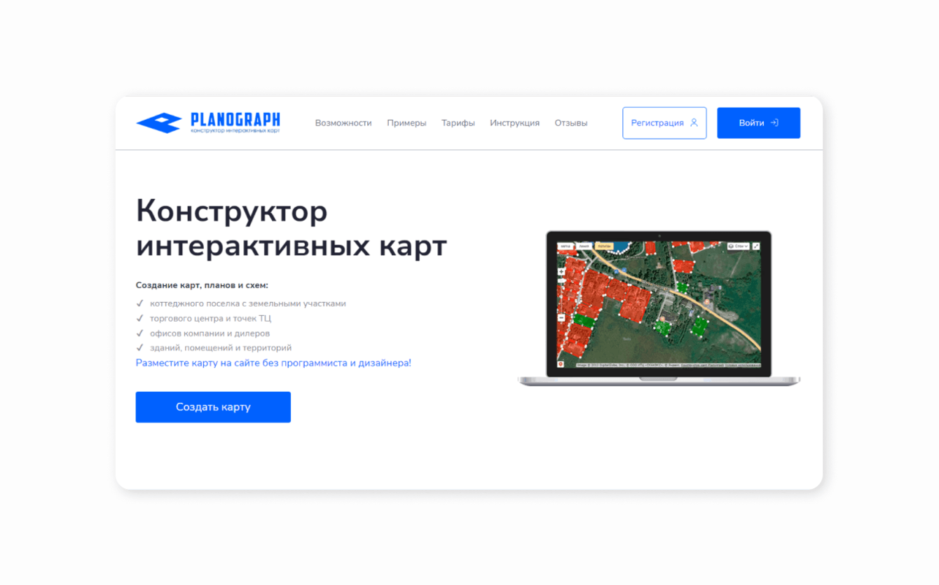 Получили удобный и простой в использовании конструктор интерактивных карт, предназначенный для создания планов и схем коттеджных поселков с земельными участками, торговых центров, офисов компаний. С момента запуска (2 недели) «Планограф» зарегистрировались около 1500 пользователей.