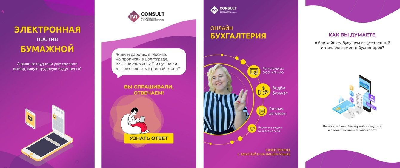 В результате сотрудничества у клиента выработался свой уникальный стиль и почерк в соцсетях. Онлайн-бухгалтерия клиента выгодно отличается на фоне конкурентов, увеличилась вовлеченность и конверсия в клиенты.