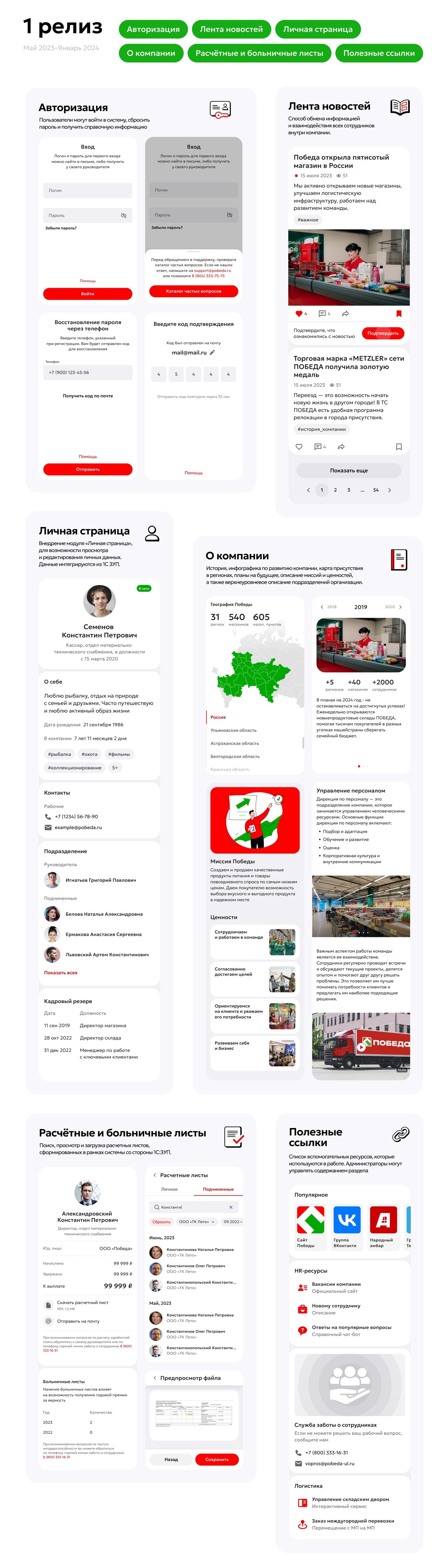 Создали механизм авторизации для линейных сотрудников. В компании два типа персонала: офисные и линейные. Первые имеют доступ к ПК и попадают на портал с помощью учётных записей. Вторые не имеют ПК. Для них был придуман механизм с уникальным цифровым следом авторизации по СНИЛС и паролю, при этом без привязки к корпоративным почтам и телефонам. Все данные интегрируются из 1С ЗУП.