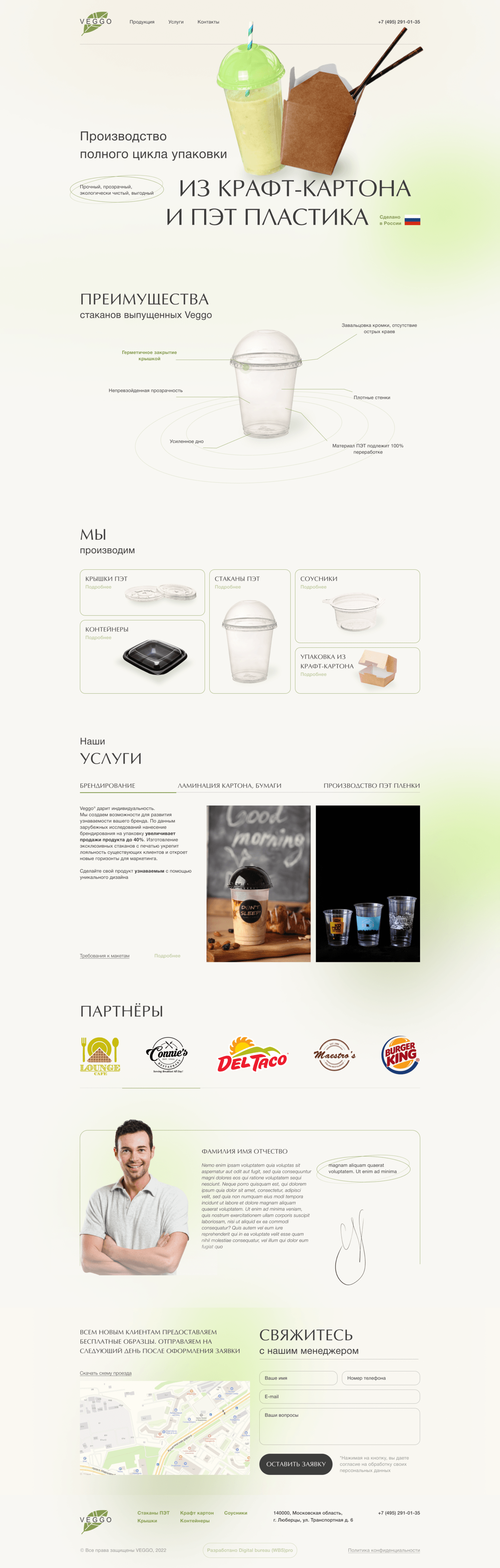 Особое внимание уделено UX/UI: мобильная версия сайта адаптирована для быстрого заказа упаковки владельцами кофеен, а инфографика и "рецепты" в упаковке помогают вовлечь пользователя.