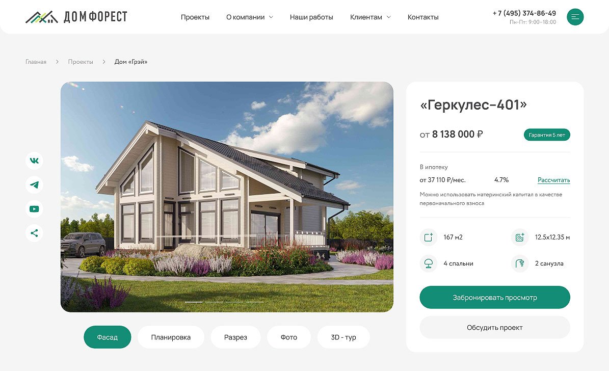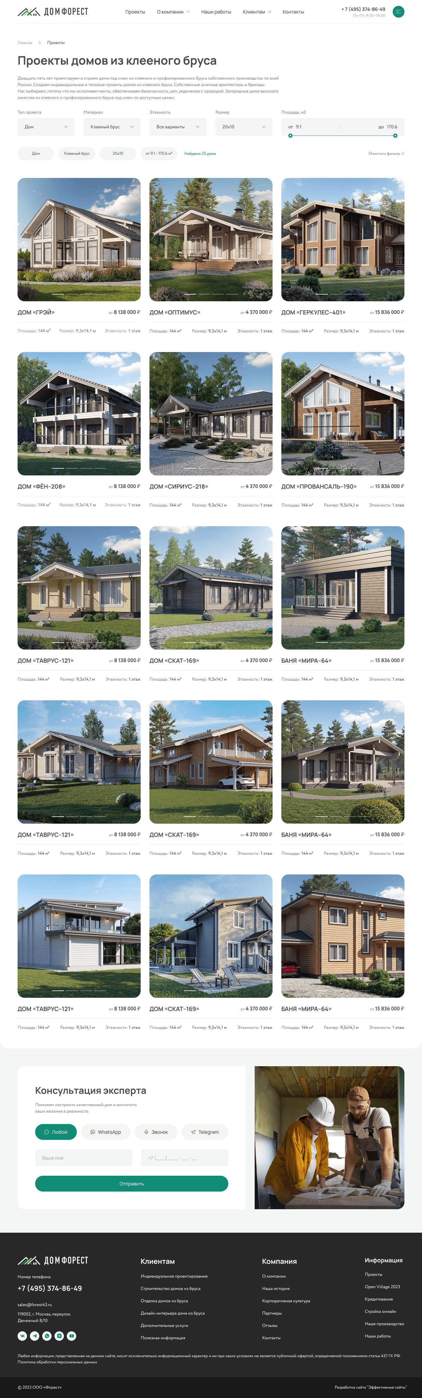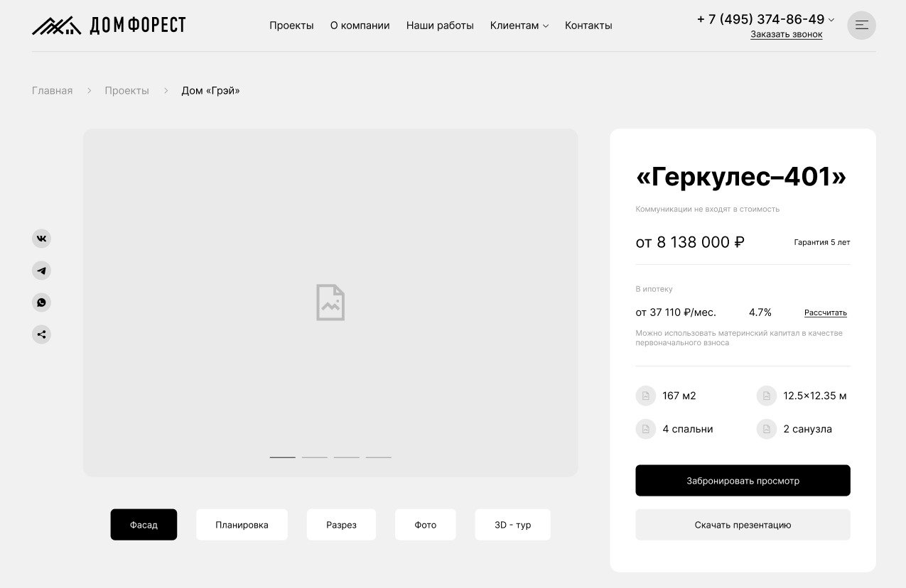 По замыслу дизайнера, в центре внимания посетителя должны были оказаться прекрасные высококачественные рендеры домов, а также инструменты их подбора, фильтрации и сортировки.