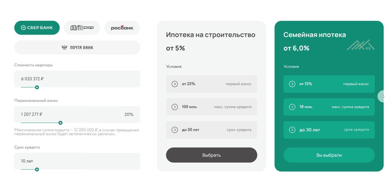 - написать ипотечные калькуляторы и предусмотреть удобный функционал для их корректировок;