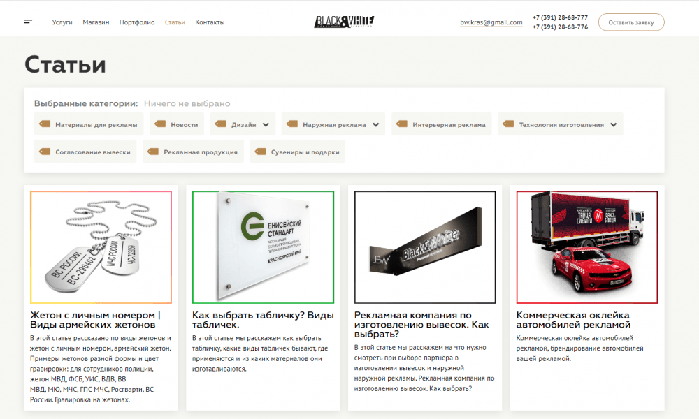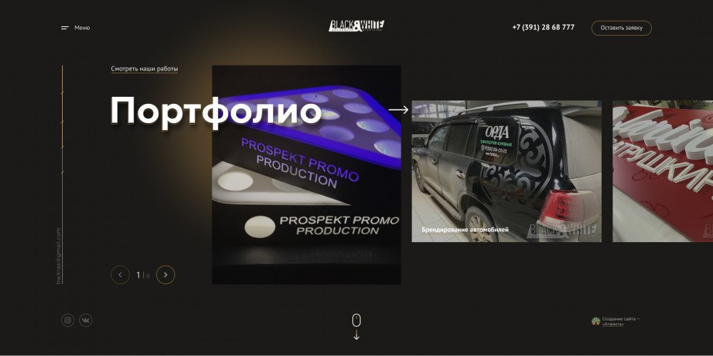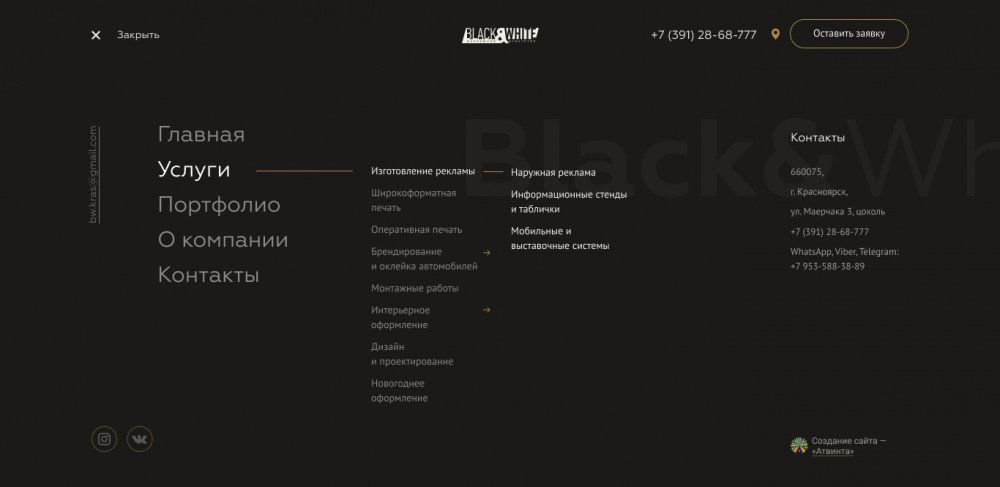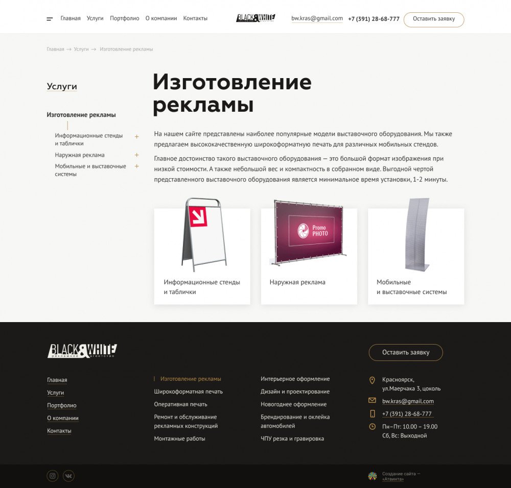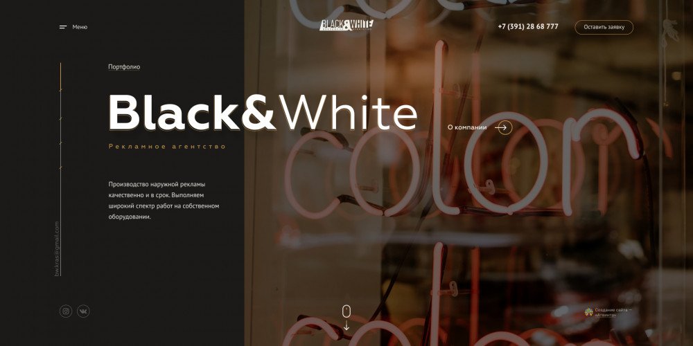 Рекламной производственной компании Black&White нужен был сайт, который увеличит поток клиентов и поможет выделиться среди аналогичных фирм.