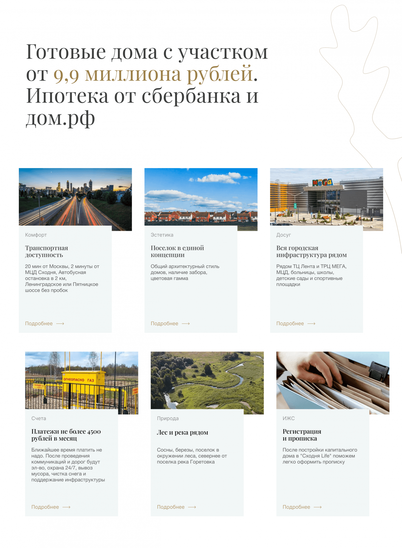 Коттеджный поселок “Cходня Life” – поселок бизнес-класса в Московской области. В поселке можно приобрести земельные участки со строительным подрядом.