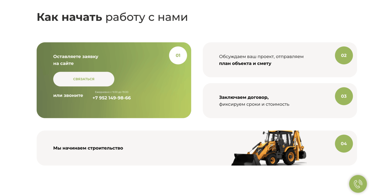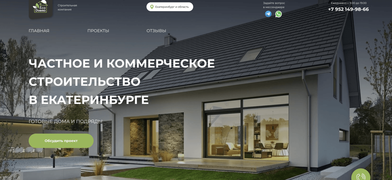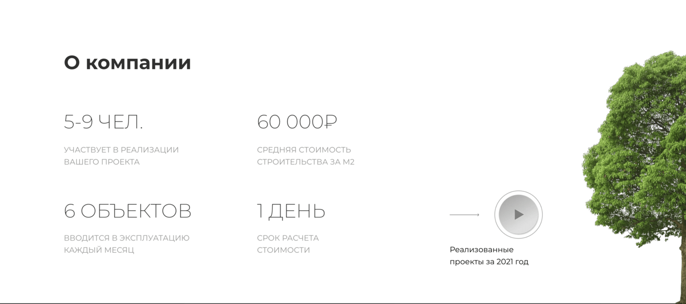 Перед нами стояла задача разработать лендинг для строительной компании. Заказчик хотел, чтобы на сайте были опубликованы все услуги организации – малоэтажное строительство, благоустройство, техническое обслуживание домов.