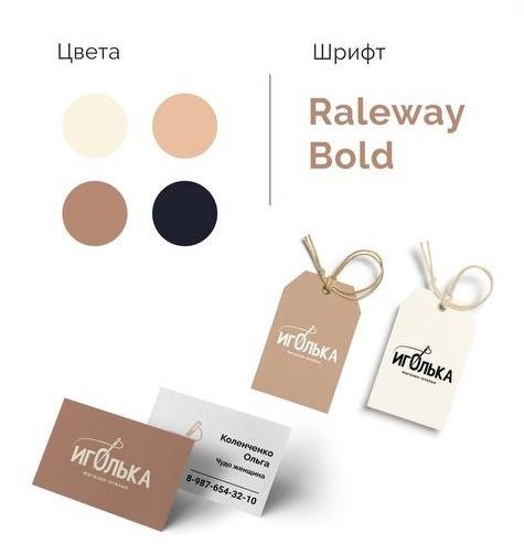 Крупная буква “О” в середине слова не случайна. Имя владелицы ателье – Ольга – мастер с высокой квалификацией швеи и хорошей репутацией. Так получился логотип с игрой слов и графическим элементом в виде иголочки.
