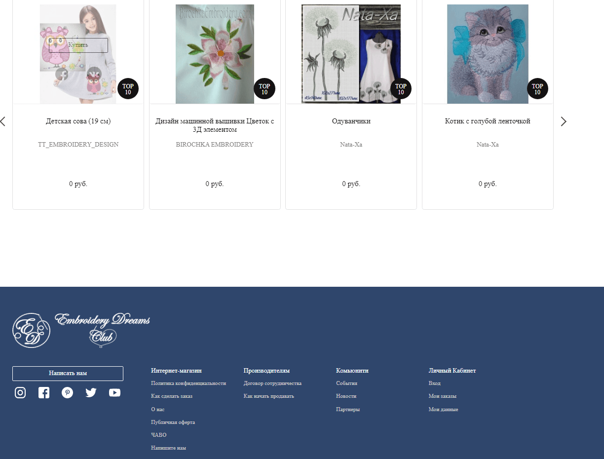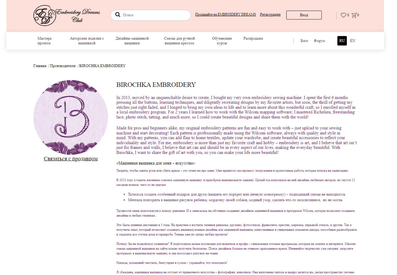 Маркетплейс, в котором можно купить дизайны машинной вышивки, схемы, продать готовые работы.