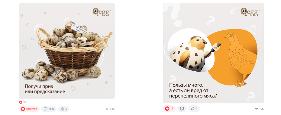 Контент для публикаций создавали разнонаправленным. За основу взяли концепцию нативной интеграции продукции бренда в рецепты приготовления блюд. Кроме того, публиковали полезные советы по питанию для взрослых и детей, рассказывали о пользе продукции из перепелов. Не обходили стороной и событийный контент, а также контент от наших подписчиков.