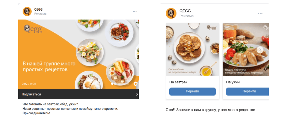 Более эффективной с точки зрения конверсионности и стоимости подписчика стала рекламная кампания с простыми рецептами в видео-формате.