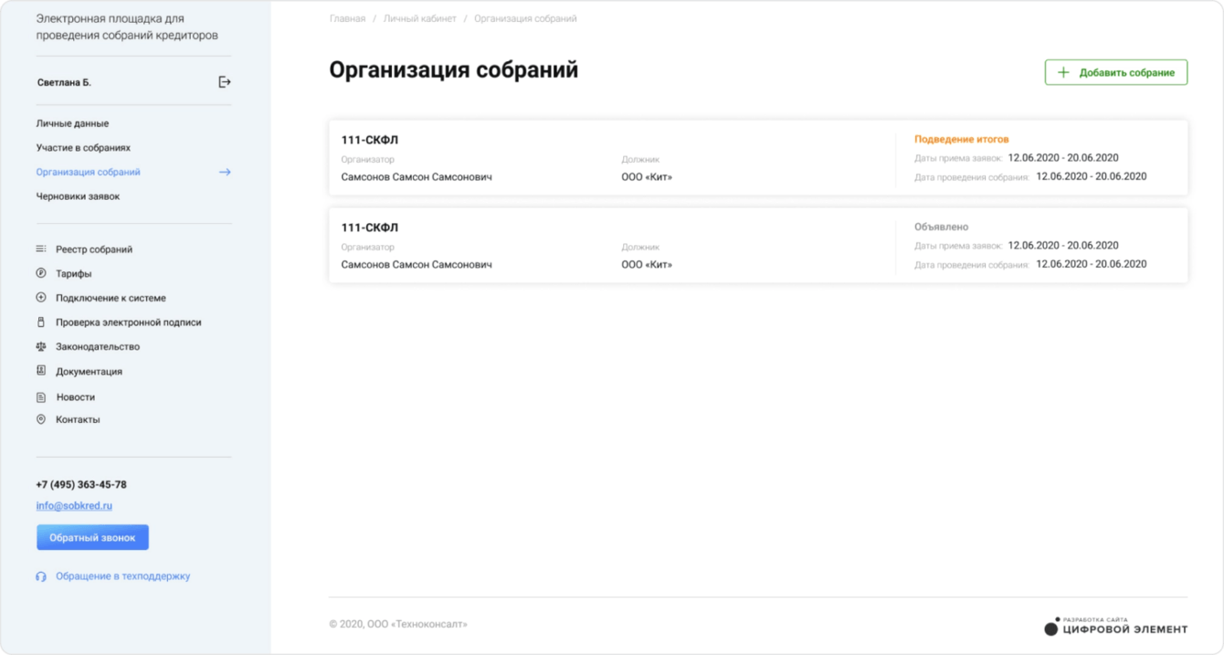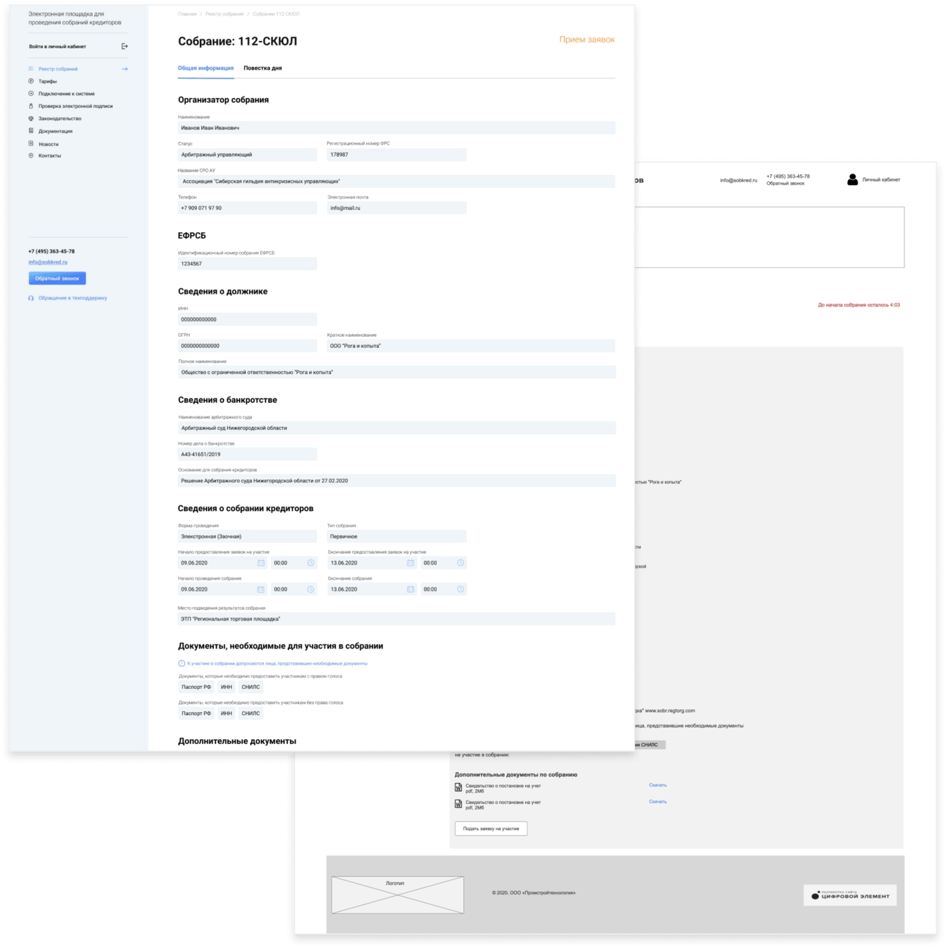 Cоздание платформы для проведения собраний кредиторов онлайн.