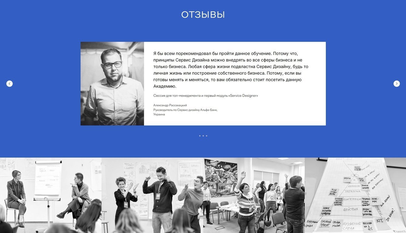 Нашей задачей было создать серию посадочных страниц для мероприятий консалтинговой компании.