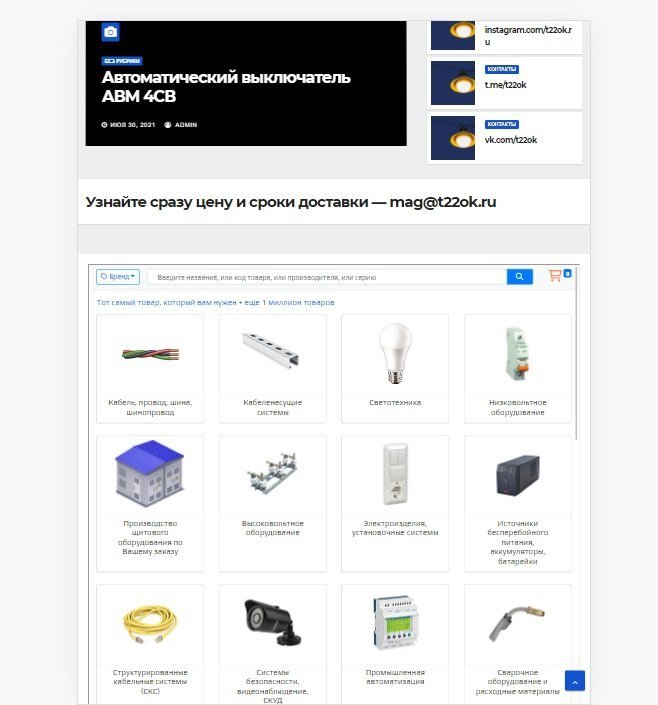 Клиент: интернет-магазин электротоваров и электротехнической продукции.