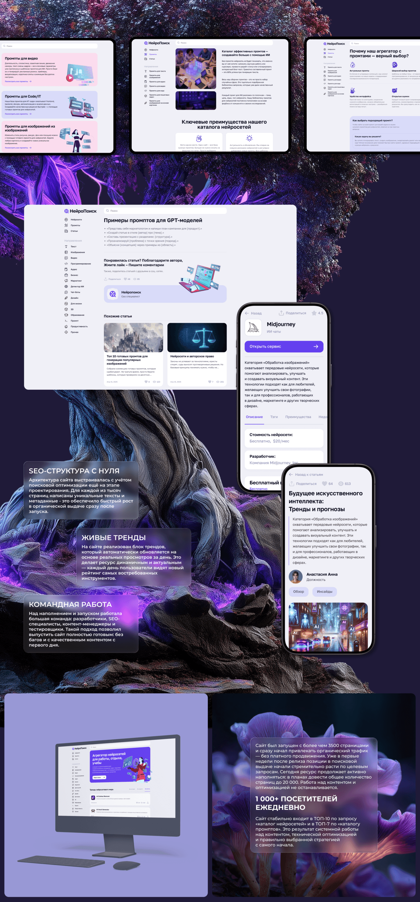 В планах — расширение до 20 000 страниц по нейросетям и промптам. Работа над проектом продолжается: команда регулярно добавляет новые материалы, обновляет контент и поддерживает технический ресурс сайта.