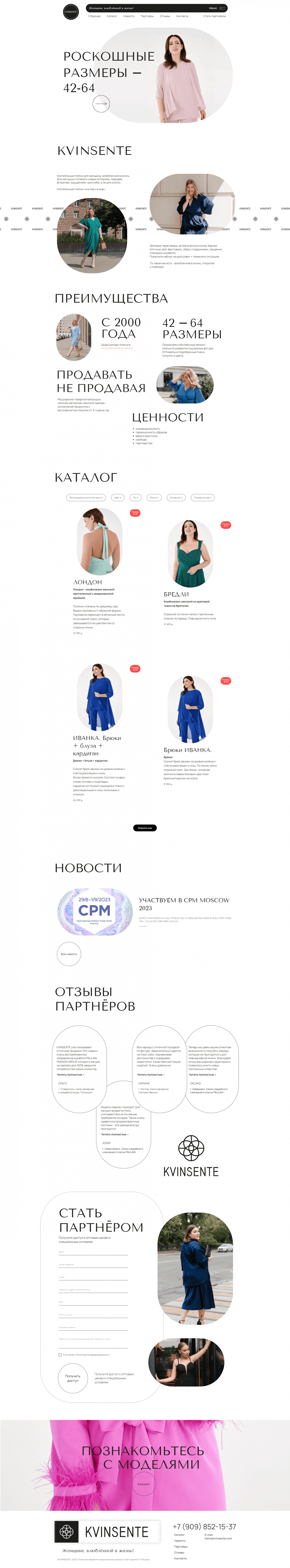 Главной целью было разработать легкий и удобный в использовании сайт. Особое внимание уделили меню и каталогу товаров, чтобы каждый посетитель мог легко найти интересующую его одежду. Также важно было стильно и красиво рассказать о философии бренда KVINSENTE.