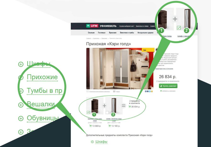 На новом сайте появилась возможность заказа готового комплекта со всей исчерпывающей информацией о входящих в состав предметах и их стоимости, общей и по отдельности.