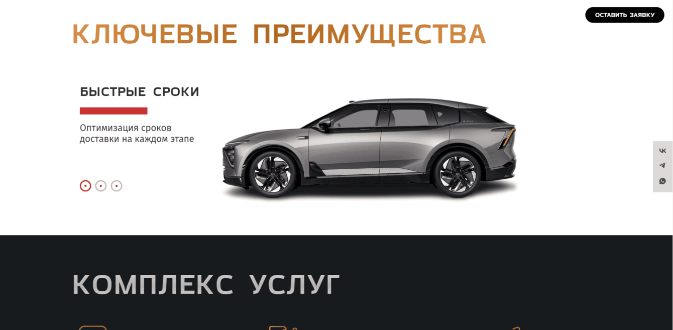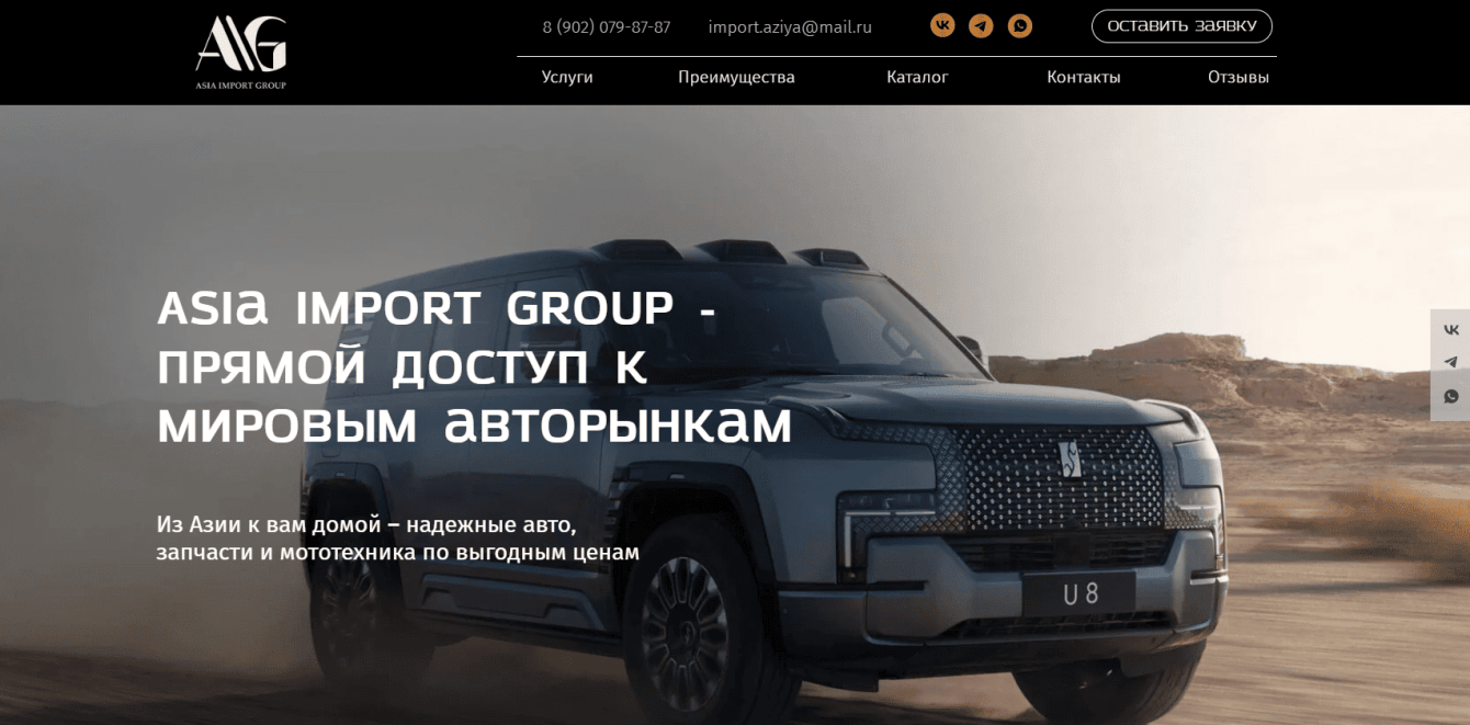 К нам обратилась компания, специализирующаяся на привозе автомобилей и спецтехники из-за рубежа. Задачей было создать стильный и современный сайт, который бы эффективно информировал потенциальных клиентов о предлагаемых услугах и ассортименте автомобилей.