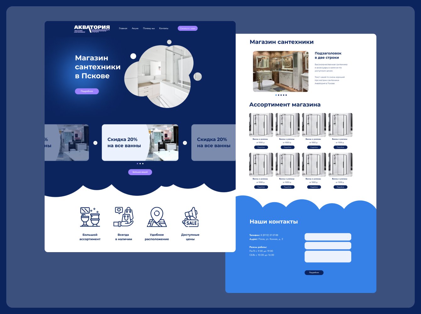 Стояла задача: создать яркий, современный сайт для магазина сантехники.
