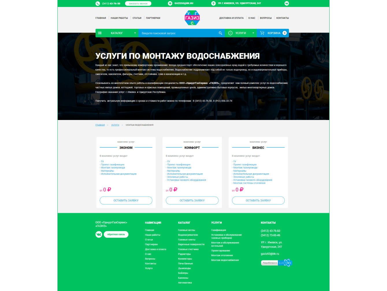Клиент: Многопрофильная компания, осуществляющая все виды работы по устройству внутренних и наружных сетей инженерно-технического обеспечения жилых домов и промышленных объектов. Предоставляет услуги в области газоснабжения, отопления, вентиляции и водоснабжения с 1998 года.