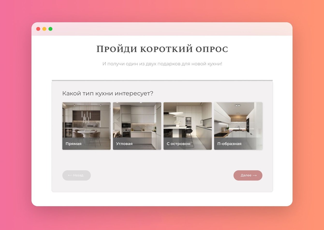 Для повышения конверсии на сайте сделали прикольный квиз, который должен был эффективно собирать заявки. Самый сложны момент был — подобрать анимацию обложки. В этом пункте мы провели очень много времени в поисках, но нашли подходящий скрипт и установили его.