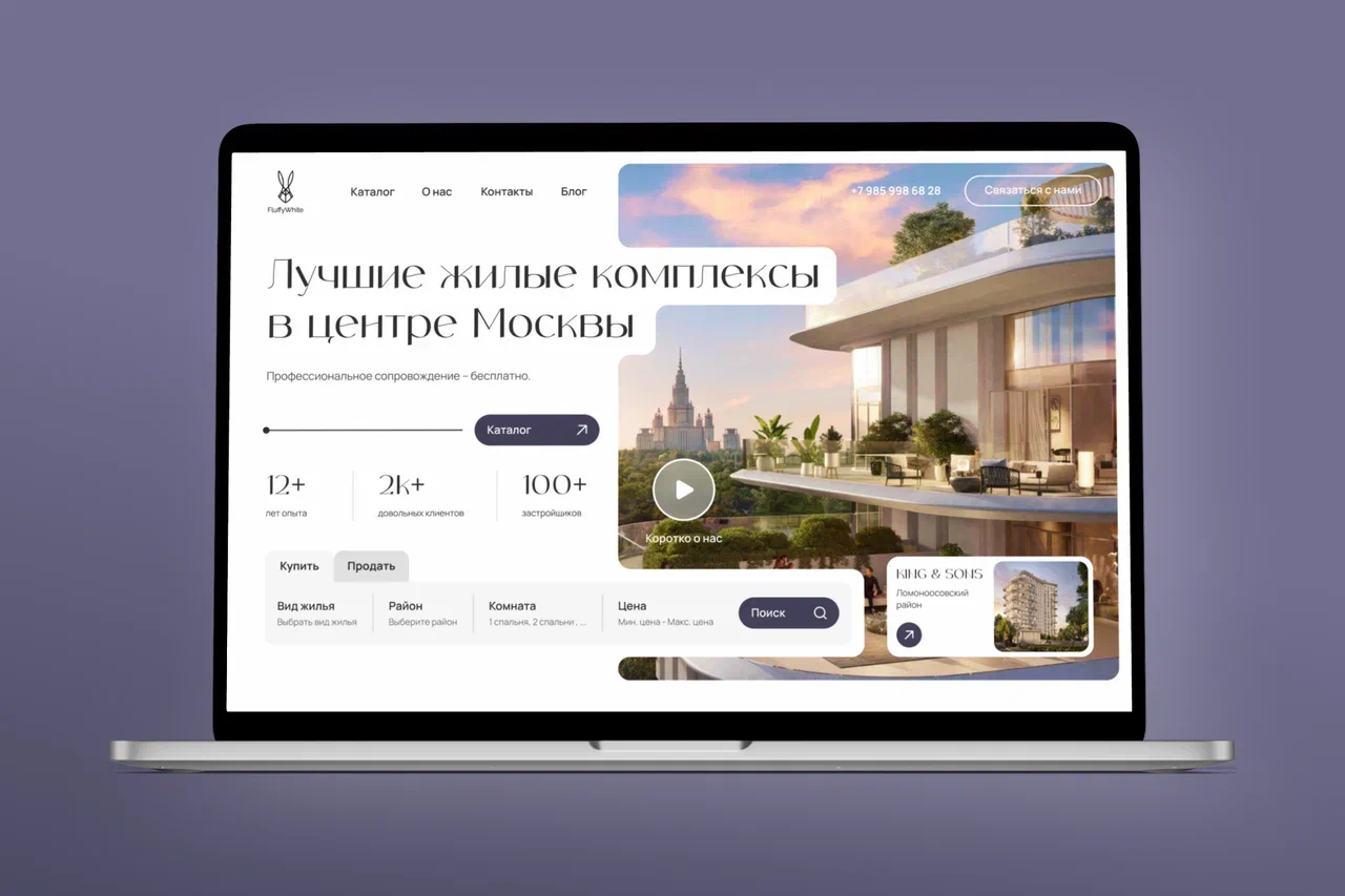 Разработка удобного интерфейса: разработали дизайн сайта с учетом удобства использования и интуитивной навигации по каталогу недвижимости. обеспечили пользовательский опыт, который позволил легко находить нужные объекты.