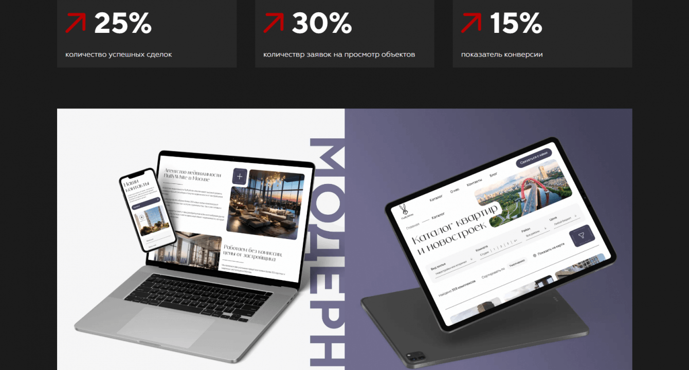 Разработка удобного интерфейса: разработали дизайн сайта с учетом удобства использования и интуитивной навигации по каталогу недвижимости. обеспечили пользовательский опыт, который позволил легко находить нужные объекты.