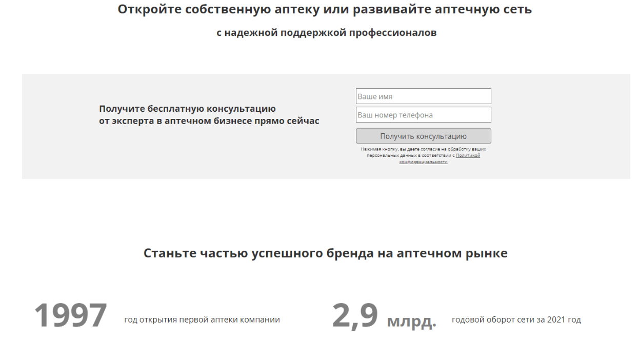 Во время анализа стало ясно, что фармацевтический рынок — сфера со множеством юридических нюансов. Получение лицензий и оформление документов могут отпугнуть начинающих партнёров. Поэтому решили сделать акцент на том, что при покупке франшизы «Фармия» клиент получает полную поддержку — от юридических вопросов до запуска аптеки под ключ.