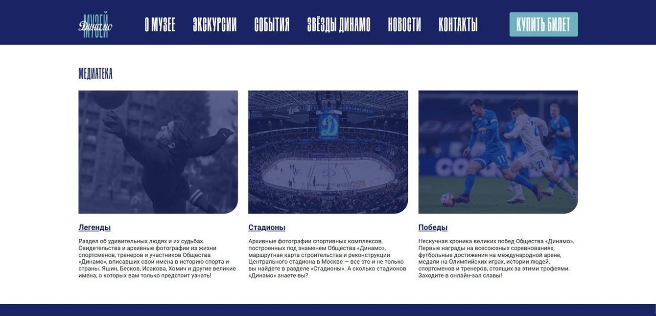 "Музей "Динамо" переехал на новую платформу абсолютно "бесшовно". Внешне сайт получился точной копией прежнего - как это и требовалось. Весь контент был перенесен с сохранением SEO позиций.