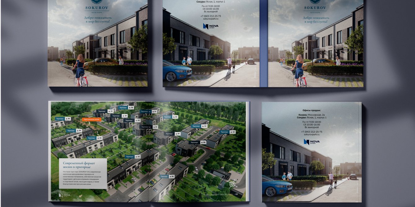 Мы разработали печатную продукцию — буклеты. Дизайн выдержали в стиле сайта, чтобы они не отличались друг от друга и бренд был легко узнаваем. В буклеты собрали основную информацию о таун-парке и его главные преимущества.