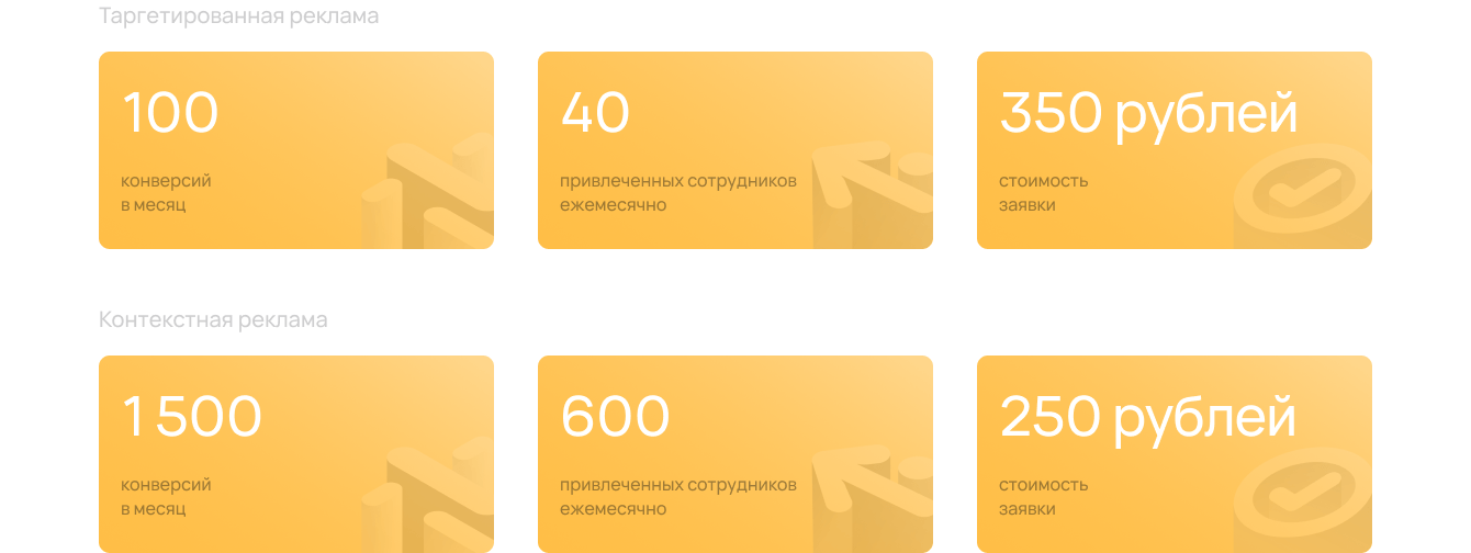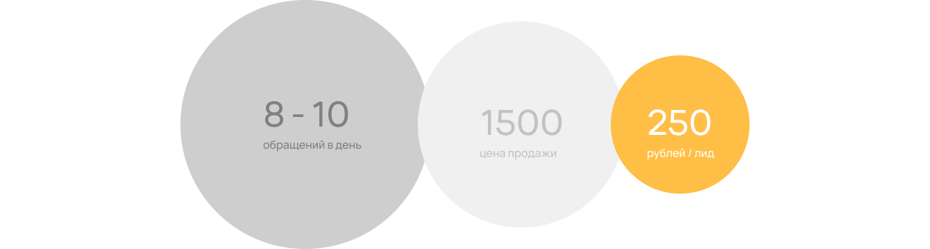 В рамках предпроектной работы мы установили, что экономически целесообразно генерировать заявки стоимостью не более 250 руб. / лид, а цена продажи не должна быть выше 1 500 руб. При этом, в день мы должны получать не менее 8-10 обращений.
