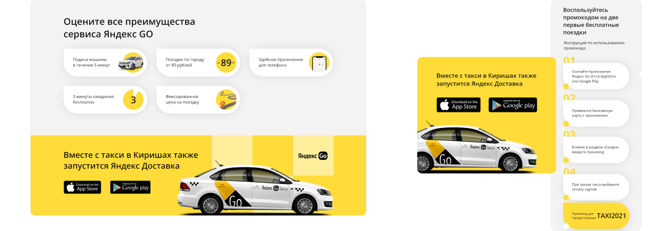 После того, как мы провели успешную работу в Санкт-Петербурге, нам выпала честь оказывать информационную поддержку сервиса Яндекс GO в Киришах.